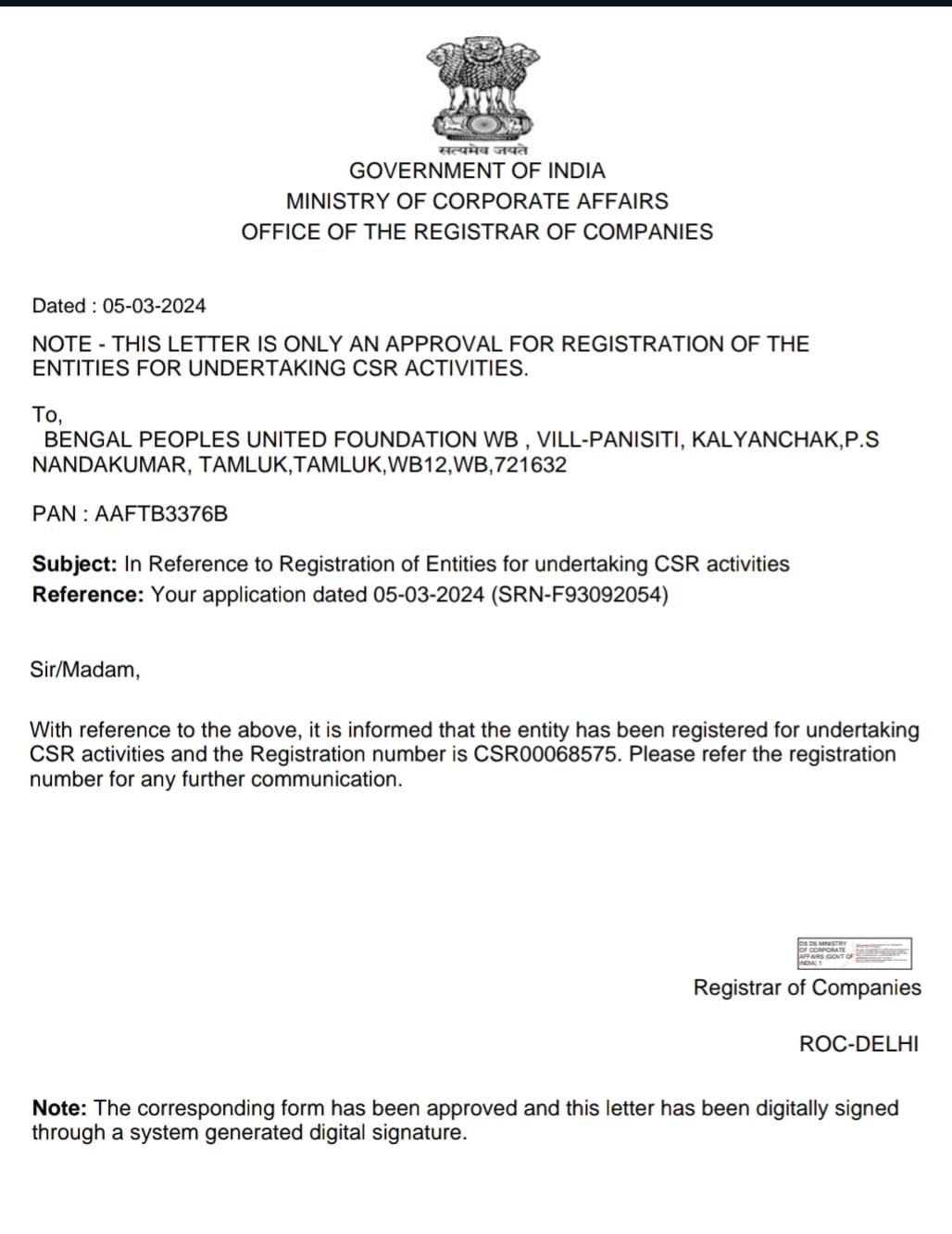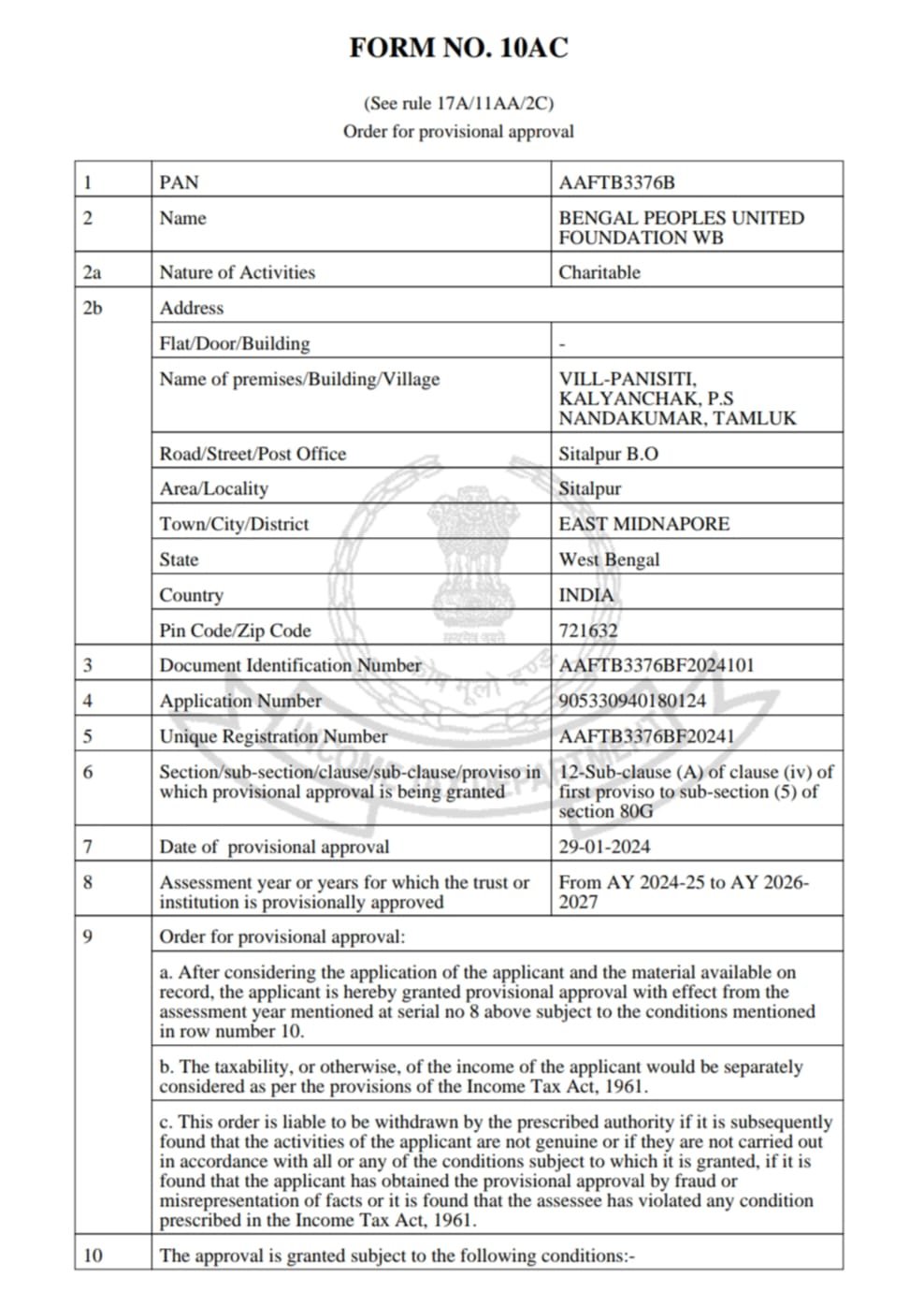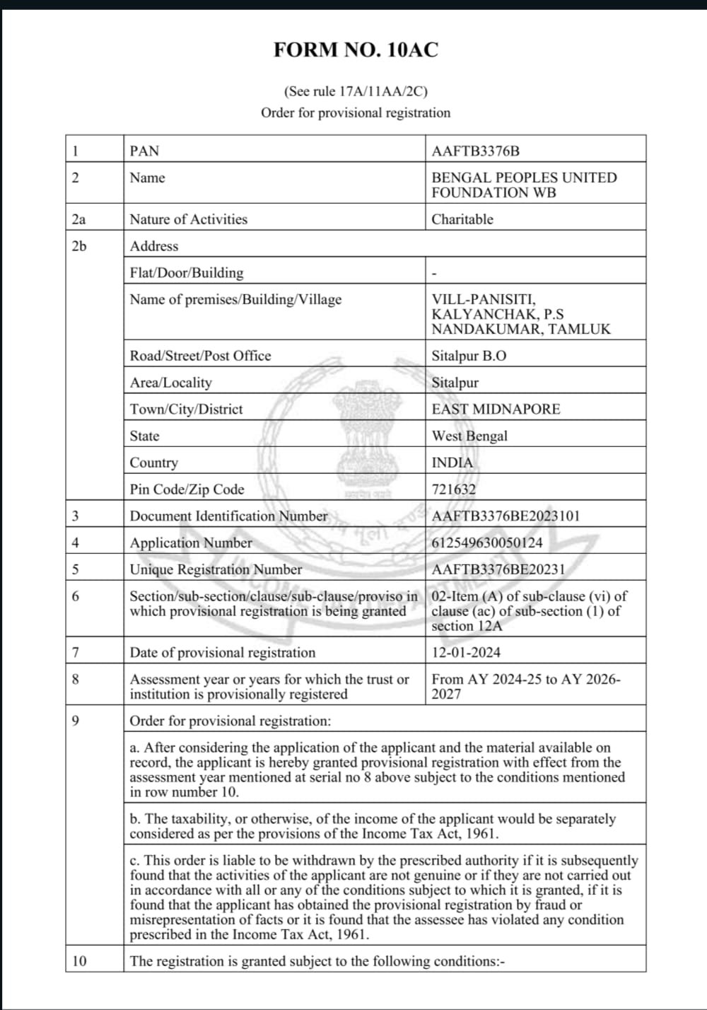 Account Name Holder: BENGAL PEOPLES UNITED FOUNDATION WB